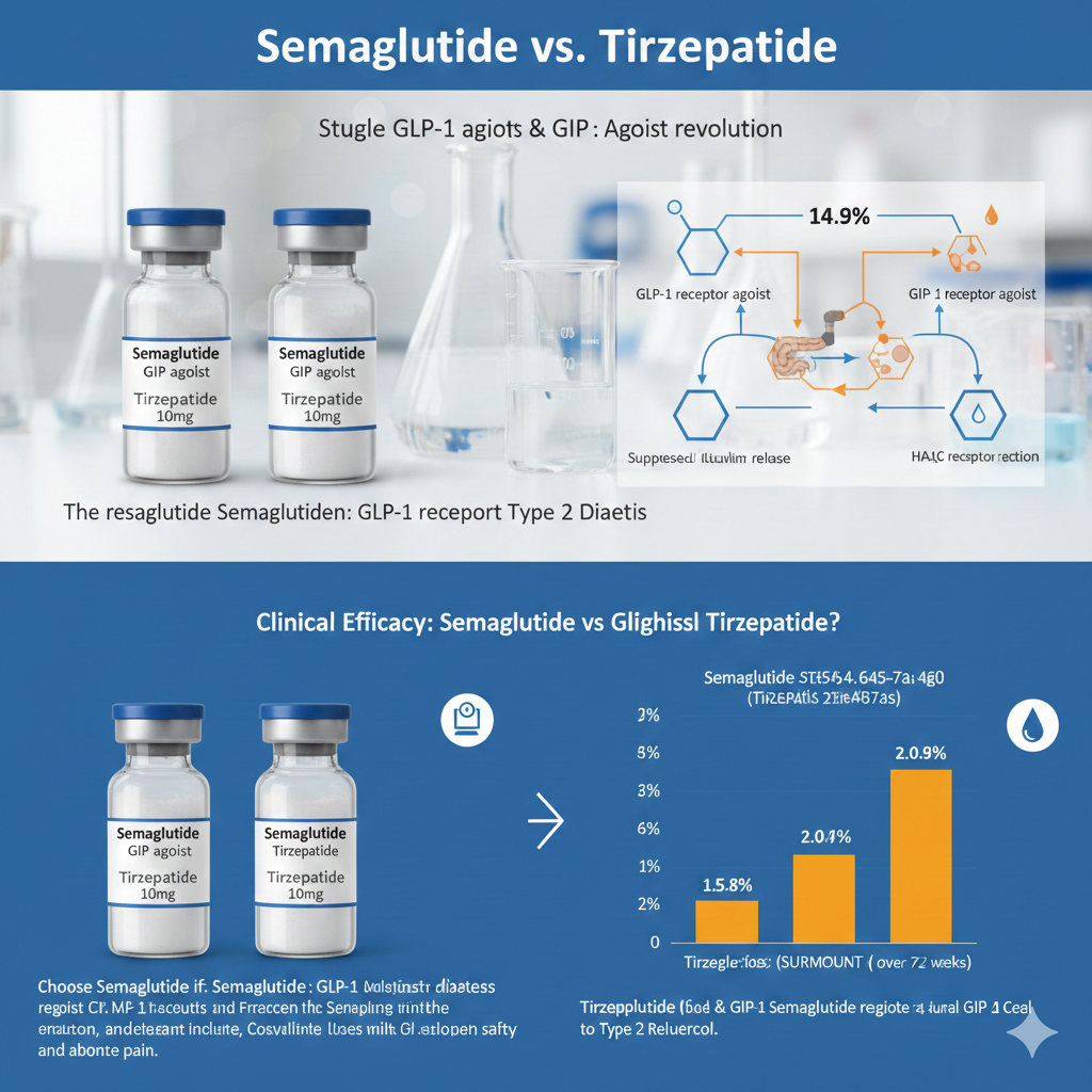 For years, Semaglutide (a GLP-1 receptor agonist) redefined the treatment of obesity and Type 2 Diabetes. But then came Tirzepatide—a groundbreaking “dual agonist” that pushed the boundaries even further. For researchers, understanding the key differences between these two powerful peptides is crucial.